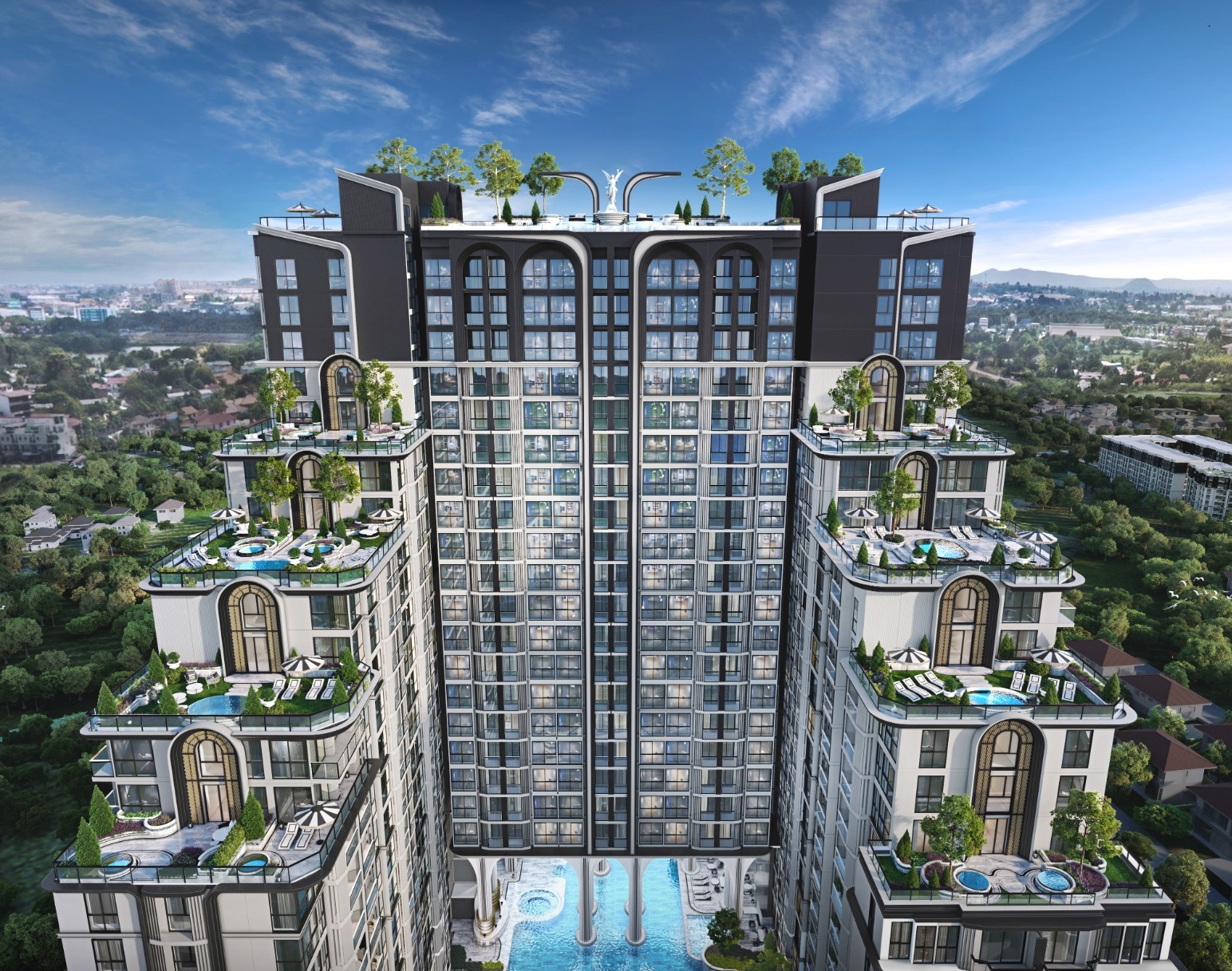 Highlights include a 70-meter outdoor pool, a rooftop infinity garden, and state-of-the-art wellness zones